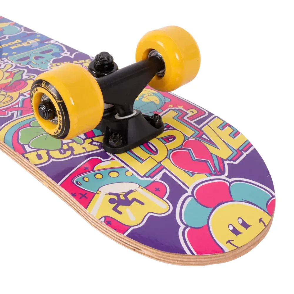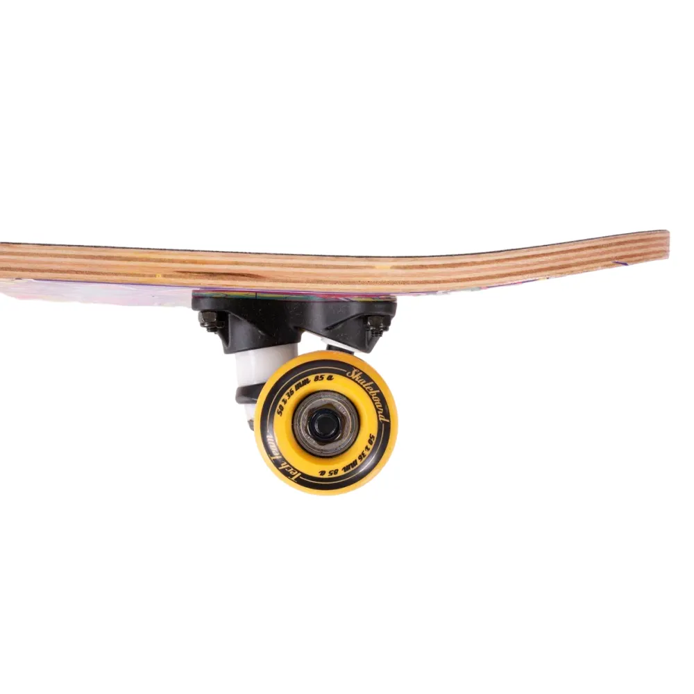 Скейтборд Tech Team Profi 2024 желтый - это смелый выбор для тех, кто ценит качество и стиль. С этим скейтбордом вы заметите, как город оживает под колесами из полиуретана размером 50x36 мм, обеспечивающих оптимальную жесткость 85А. Дека из 9 слоев прочного китайского клена гарантируют устойчивость и долговечность, а ее размеры 24”х6” обеспечивают максимальный комфорт при катании. Верхняя часть покрыта чёрной шкуркой 80AB для непревзойденного сцепления, а нижняя часть украшена эксклюзивным принтом в жёлтых тонах, вдохновленным винтажными наклейками. Скейтборд оснащен подшипниками ABEC 5 для плавного и быстрого движения, а двойной концевой загиб Деки (Double Kick) позволяет выполнять трюки с легкостью. Это не просто скейтборд, это способ выразить себя.