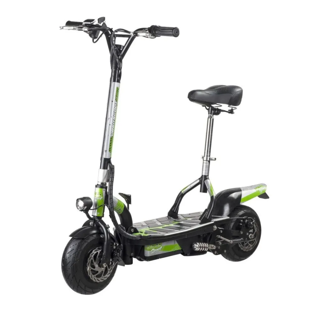 Прочная конструкция внушает доверие, съемное сидение регулируется по высоте. Вес электросамоката Uber Scoot ES06 соответствует 37 кг, максимальная нагрузка 120 кг. Все это придает солидности этому виду транспорта.