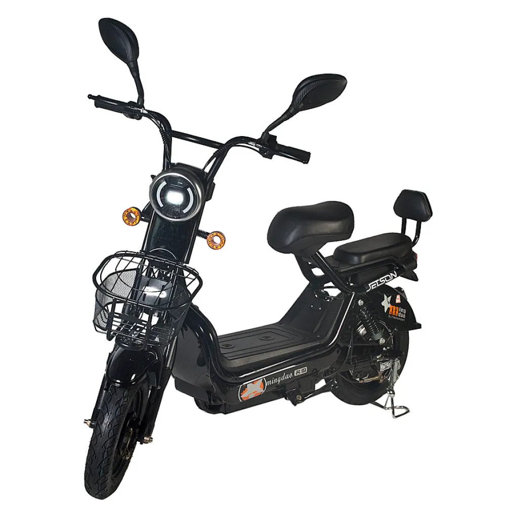 Удобная замена общественному транспорту и личному автомобилю – электроскутер GM-60 от компании Jetson. Сочетая в себе современный дизайн, динамику и комфорт, этот скутер способен проехать до 80 километров без подзарядки благодаря своему ёмкому свинцовому аккумулятору – целых 20 Ач. Батарею можно легко снять и заряжать там, где вам удобно. 450-Ваттный электромотор способен разогнать скутер до 50 км/ч даже при наибольшей возможной нагрузке – 180 килограмм. Мягкое, широкое и прочное сидение из эко-кожи с прямой посадкой делает самые долгие поездки на электроскутере приятными как для водителя, так и для пассажира. Тормоза скутера – барабанного типа и спереди, и сзади – срабатывают эффективно и без лишних рывков. Мощная LED-фара и яркие габаритные огни делают передвижение на скутере ночью безопасным. Управление движением, фарами и скоростными передачами осуществляется с помощью кнопок и ручек на руле. Высокопрофильные, 16-дюймовые колёса спокойно проезжают через любые препятствия на городских дорогах. В комплекте Jetson GM-60 идут корзина для перевозки вещей, пассажирское седло и сигнализация.