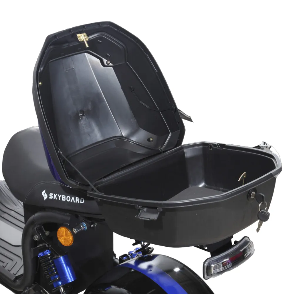 Электроскутер CityCoco Skyboard BR30-2WD (Ural)​ – черный как демон байк готов внести экстрим в жизнь, сделать ее разнообразной и незабываемой. Скоростные характеристики электроскутера впечатляют, заставляют задуматься о покупке аксессуаров безопасности для ездока.
