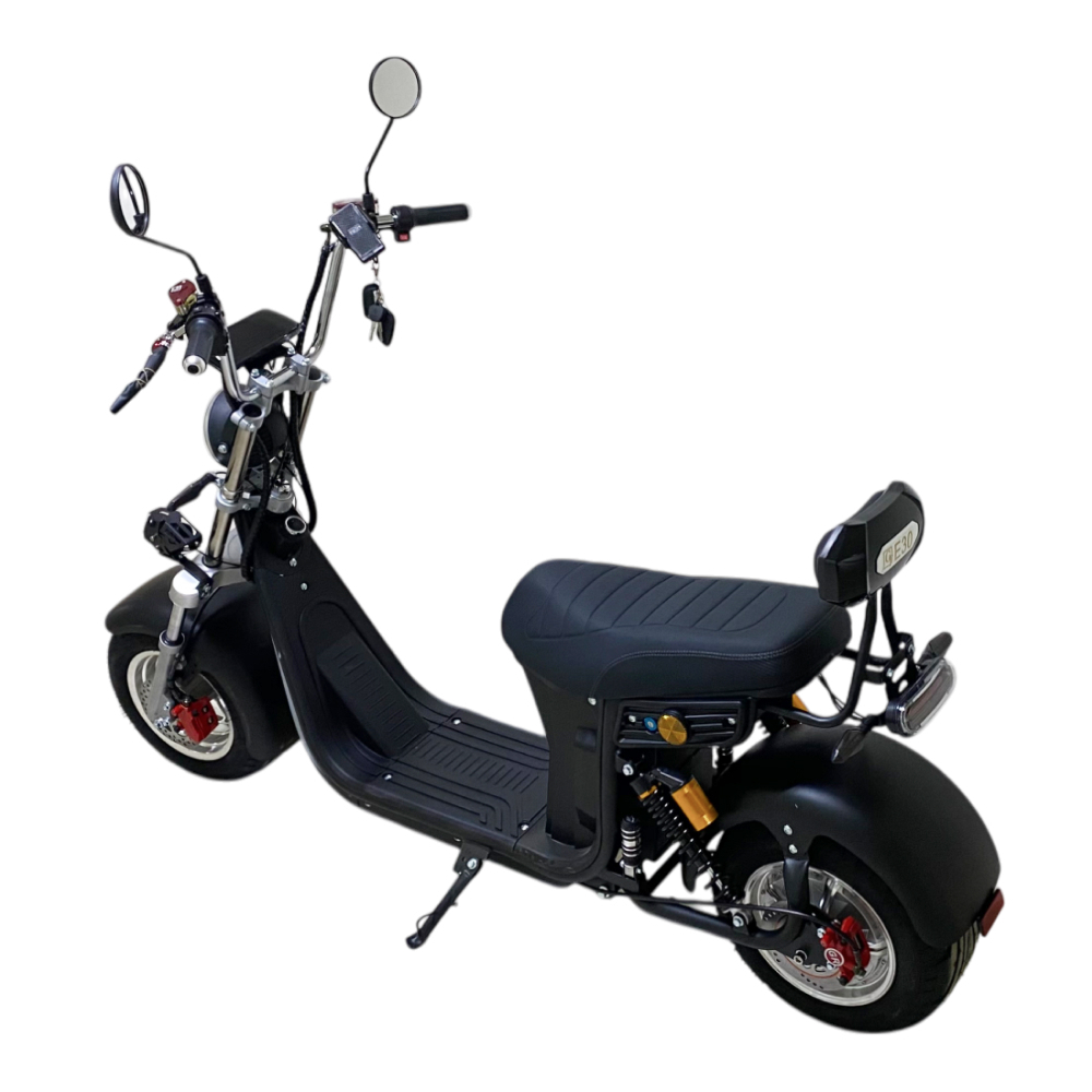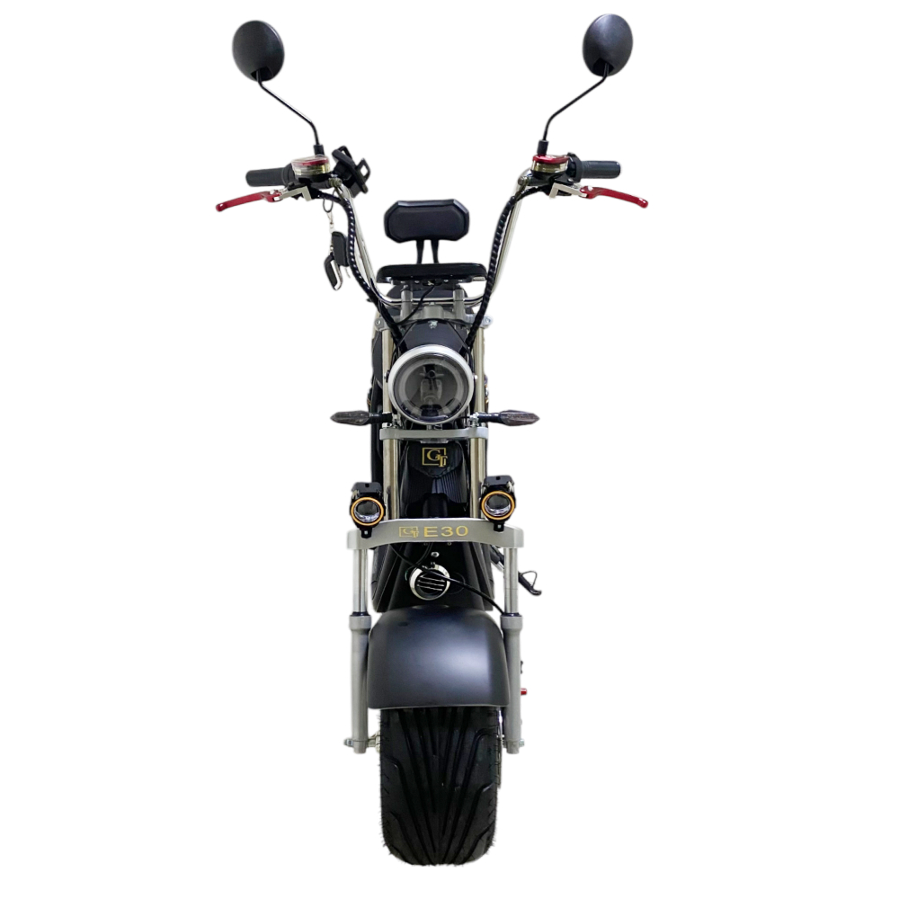 Электроскутер Citycoco GT E30 в черном матовом цвете — это универсальное средство передвижения. С мощностью 3000W и задним приводом, он обеспечивает отличную динамику и маневренность на городских улицах. Благодаря двухколесной конструкции и надувным колесам диаметром 18 дюймов, скутер уверенно держится на дороге, что делает его идеальным для поездок по различным покрытиям.Съемный аккумулятор с напряжением 60V позволяет преодолевать расстояние до 50 км на одном заряде, что делает его идеальным вариантом для ежедневных поездок. Время зарядки составляет всего 5 часов, что обеспечивает быструю готовность к новым приключениям. Кроме того, в конструкции предусмотрено дополнительное место под аккумулятор, что увеличивает возможности автономной работы.Скутер весит 75 кг и может выдерживать максимальную нагрузку до 200 кг, что делает его подходящим для различных пользователей. Дисковые гидравлические тормоза обеспечивают надежную остановку, а большое мягкое сиденье и амортизаторы гарантируют комфорт даже при длительных поездках.Дополнительно, Citycoco GT E30 оснащен бортовым компьютером, зеркалами, звуковым сигналом, фарой и поворотниками, что повышает безопасность и удобство. Большая дека под ноги и прочная конструкция делают поездки еще более приятными.Электроскутер Citycoco GT E30 — это идеальное сочетание стиля, мощности и комфорта для тех, кто ценит удобство и скорость в городской среде.