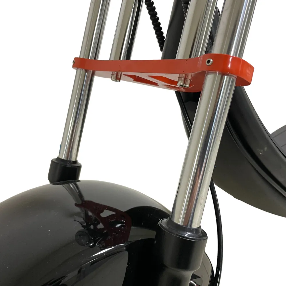 Электроскутер Kugoo Kirin С2 Pro также оборудован передним гидравлическим дисковым тормозом, который обеспечивает надежное и безопасное торможение. Вы сможете контролировать скорость и остановку с легкостью, что повышает уровень безопасности во время поездки.