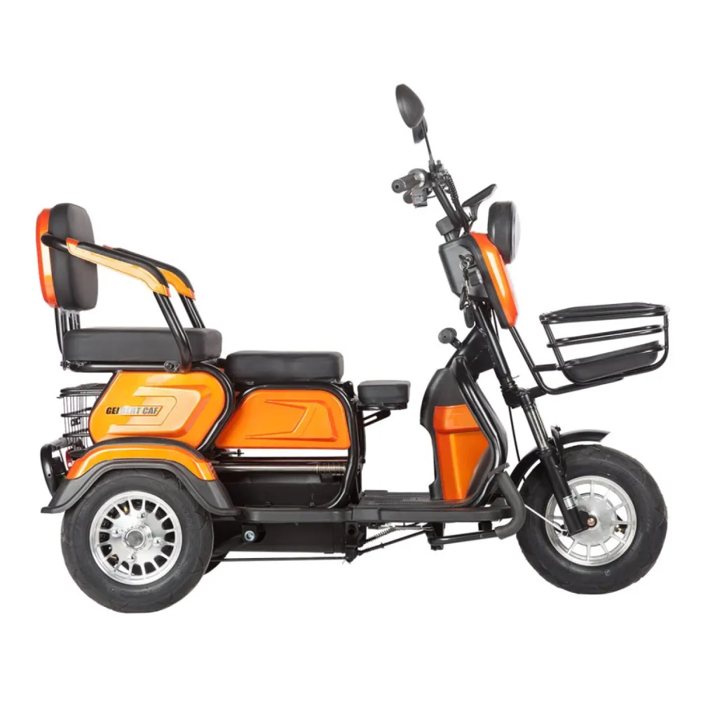 • Компактность и легкость: С весом всего 70 кг и габаритами 114х70х65 см, этот электрический трицикл легко маневрирует в условиях городской среды, не занимая много места при хранении.