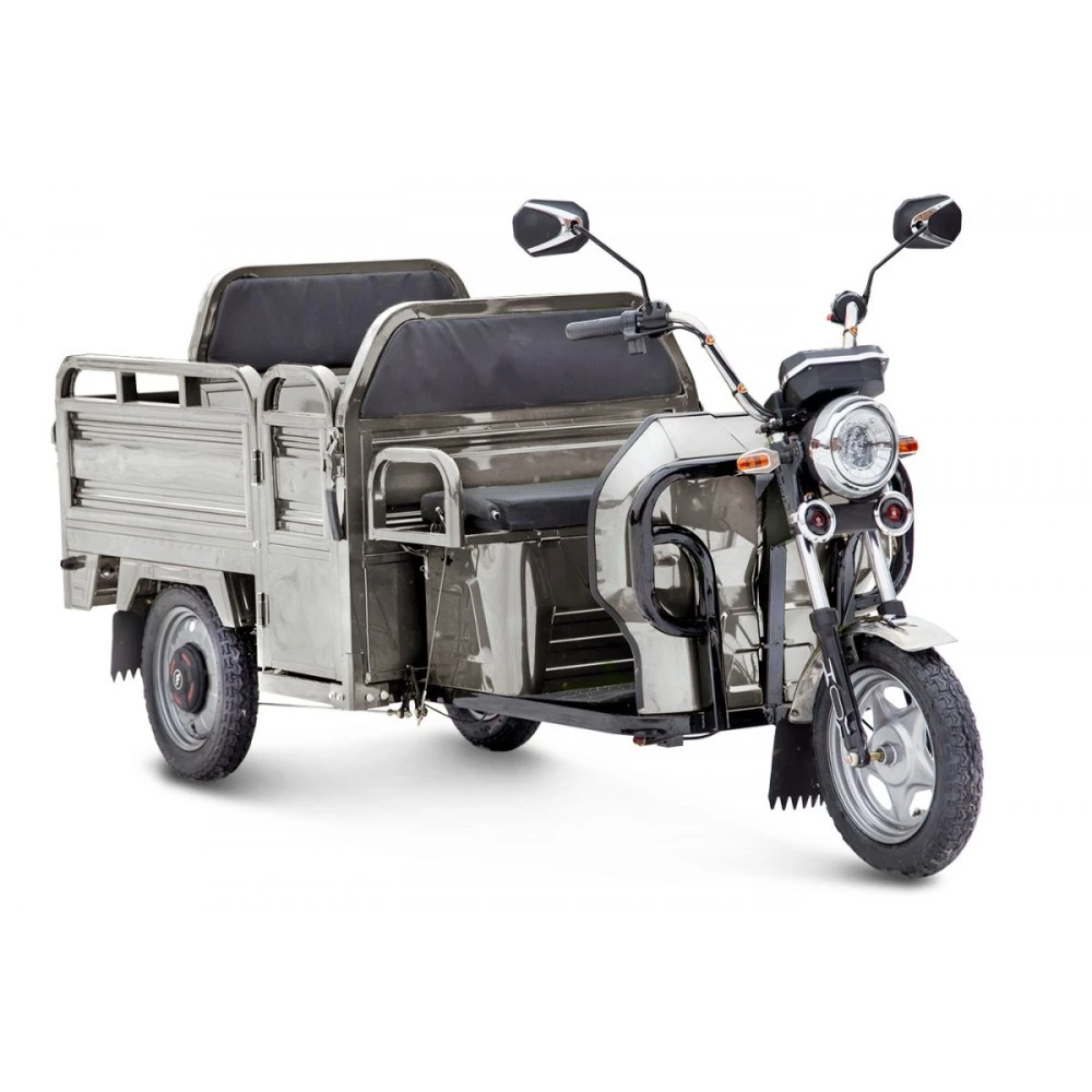 Производитель акцентирует внимание на качественной сборке транспортного средства. Техника смело может похвастаться двигателем мощностью 800 Вт. Для комфорта поездок модель имеет удобное сидение и предусмотрено дополнительное пассажирское кресло. Зеркала заднего вида обеспечат лучший обзор при движении. Яркие диодные фары и габаритные огни хорошо освещают дорогу. Надежная тормозная система состоит из передних и задних барабанных тормозов. Рулевая часть и рама транспортного средства усиленные, позволяют легко маневрировать при движении.