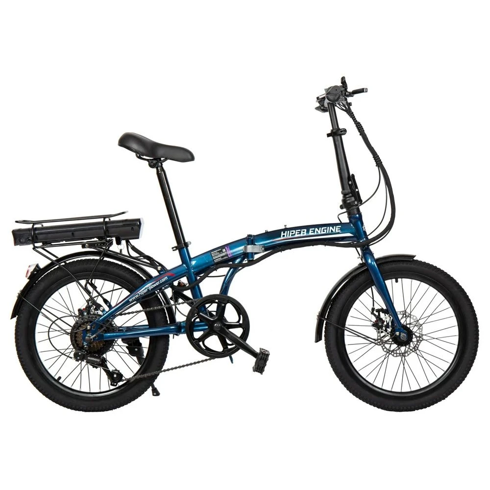 Электровелосипед HIPER Engine FOLD X1 (2022) в синем цвете– внедорожная техника с электрическим двигателем мощностью 250 Вт и отлично сцепляемой с поверхностью 20-дюймовыми колесами готова показать, что такое крутая безопасная езда на продолжительные расстояния. Купить электровелосипед с выгодой для себя предлагает наш интернет-магазин.