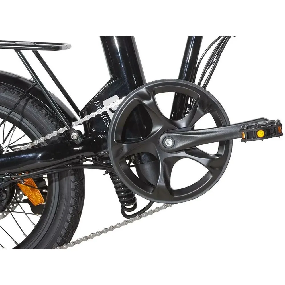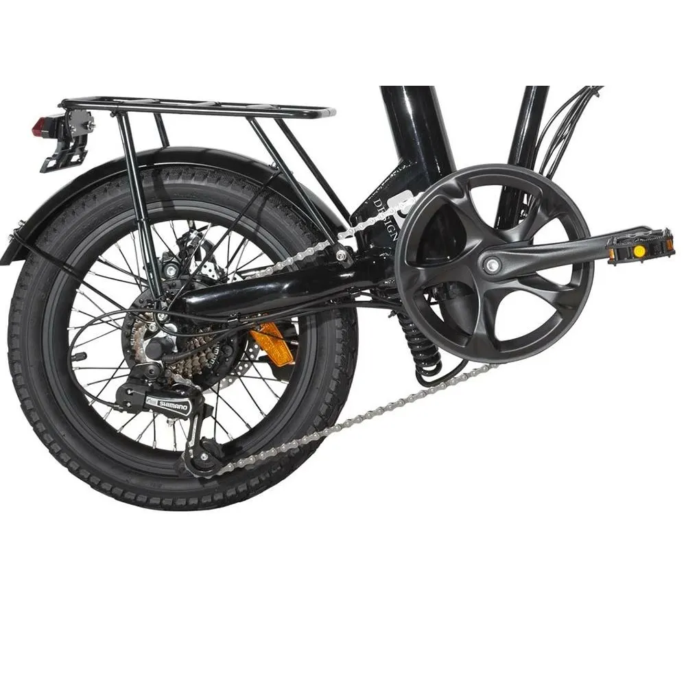 Масса электровелосипеда составляет 21 кг. При этом максимальная нагрузка рассчитана на взрослого пользователя или компактные габариты. Байк снабжен багажником. Корпус электрического велосипеда весом до 140 кг. Дизайн – совершенствованный, современный, подчеркивает особое отношение производителя к технике. Электровелосипед оснащен двигателем мощностью 350 Вт, который в сочетании с емкой АКБ способен развивать скорость до 35 км/час и преодолевать приличное расстояние. Батарея расположена в недоступном для райдера месте, что исключает соприкосновение ног при движении.